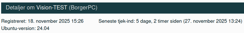 Den eneste forskel fra tidligere er, at navnet på adminportalen kan indeholde store bogstaver, mens hostname i konfigurationer og computerens faktiske hostname vil være det samme navn med kun små bogstaver. En ændring af computerens navn på adminportalen vil dog først afspejles på selve computeren efter næste tjek-ind. De nye 24.04-images har denne nye klient indbygget.